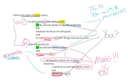 The opening sentence to the passage gives us our theme: "When the Spirit of Truth comes". Well what can we expect? Well a simple analysis of the sentence structure and relationship of sentences shows us that we can expect 2 things: